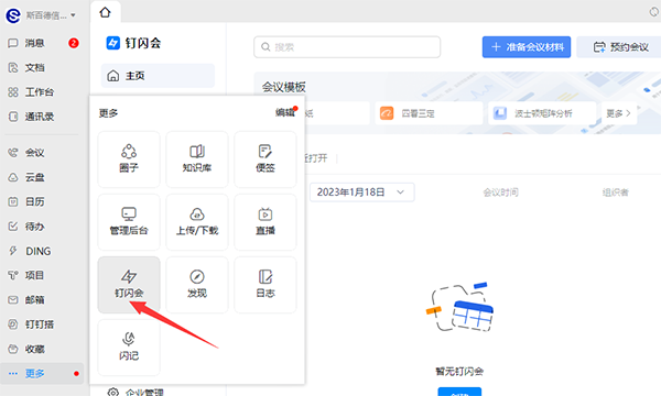 1)电脑端钉钉:打开钉钉,点击左下角的“更多”进入“钉闪会”;